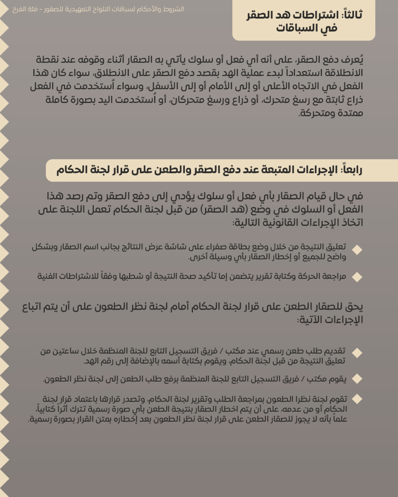 الجولة الأولى: لمسافة 300 متر خلال الفترة من 5 الى 8 نوفمبر 2025، على مدار أربعة أيام